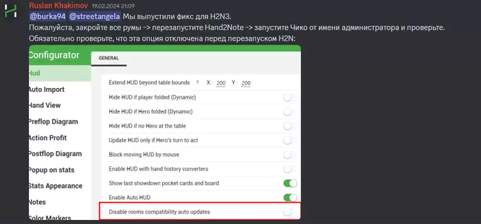 по H2N. запустил два стола МТТ. на первом ХАД появился с какой-то задержкой (раньше на первой же руке появлялся, побыстрее). руки стали трекаться (уходить в статистику) где-то с 5-6 раздачи (ХАД появился раньше, на первой - второй раздаче). на втором столе ХАД не появился и спустя 20-30 раздач.