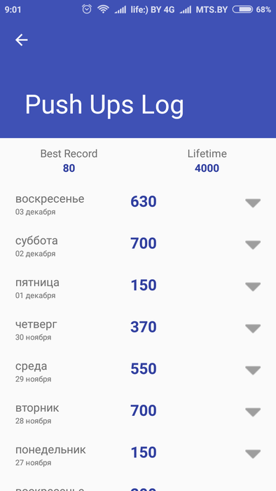 Итог прошедшей недели: 7 дней = 3250 раз (план на неделю 2296)