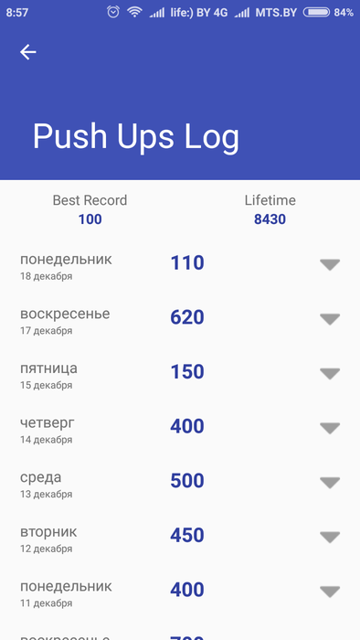 Итог прошедшей недели: 7 дней = 2520 раз (план на неделю 2296)