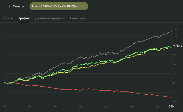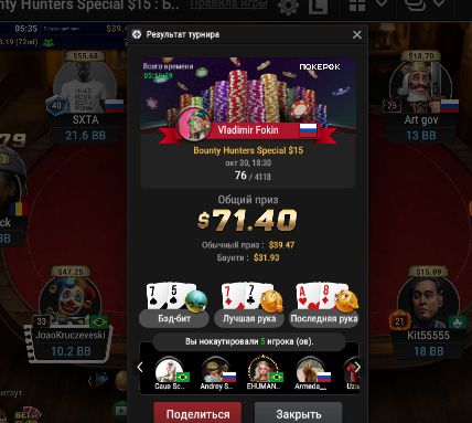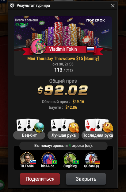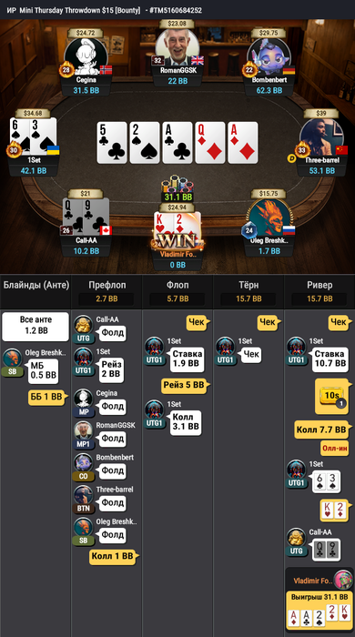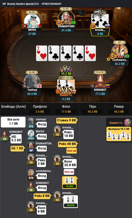 Отыграл сочно. Третий овербет в блеф успешно прошёл