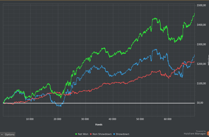 Да не, у меня так то статы всегда адекватные. Бывает доходят до 23/18 в редких сессиях, но в целом где то 18/14 должны быть ну так ХМ говорит. Иногда я просто начинаю развлекаться, там играть овербетами, заходить на эни ту, проблефовываю стеки на полном мусоре в совершенно не подходящих ситуациях и т.д.