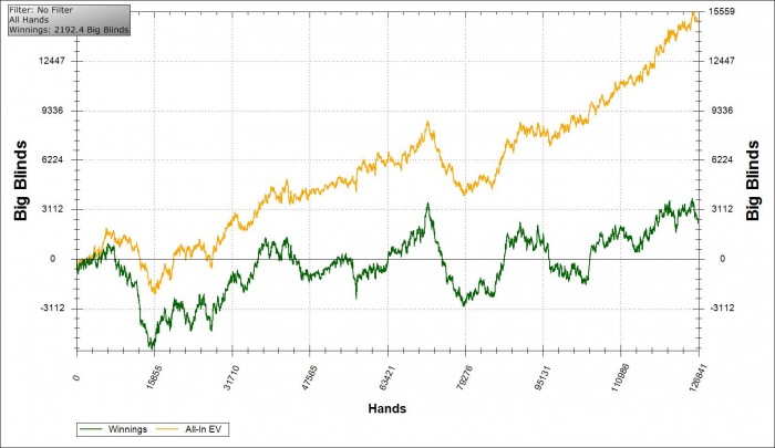 Играл с очень пёртым агрофишем с трибетом 65% (при чём размер абсолютно рандомный от мин до потбета) и кбетом при этом под 70%, чек\рейз флоп 25. И при этом как только я пытался сопротивляться он либо натс показывал, либо монетку тащил, ещё и сам налажал прилично. В таком стиле залил ему стеков 8.