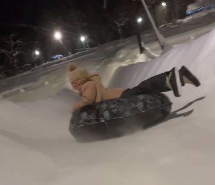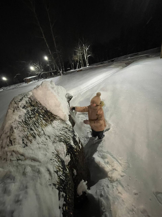 Там миллион видосов, как мы катались по одному, лежа, паровозиком, в догонялки – какое-то счастье в моменте, которое прямо чувствуется. Никто не капризничает, если что, можно погреться – прям рядом всё, никого вокруг нет, тишина звенящая, наши крики эхом по округе раздаются и снег идёт красиво-красиво.