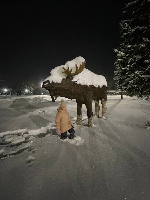 Днём (не в тот же день) собрали детвору, закупили шашлыки в любимом мясном магазине (готовые, очень не хотелось что-то готовить) и поехали. Чем дальше ехали, тем заснеженнее становилась дорога, последние 10 км ехали чисто по снегу и видели птиц на дороге и были готовы к встрече с лосями (встретили в итоге, но не такого, о котором вы подумали).