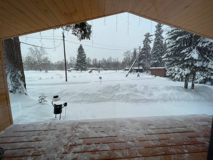 И тишина… Какой же кайф. Домик совсем небольшой, но всё есть (сауна тож) и что самое прикольное – внутри жарко благодаря тёплым полам. Спали с открытым окном, на улице -10!