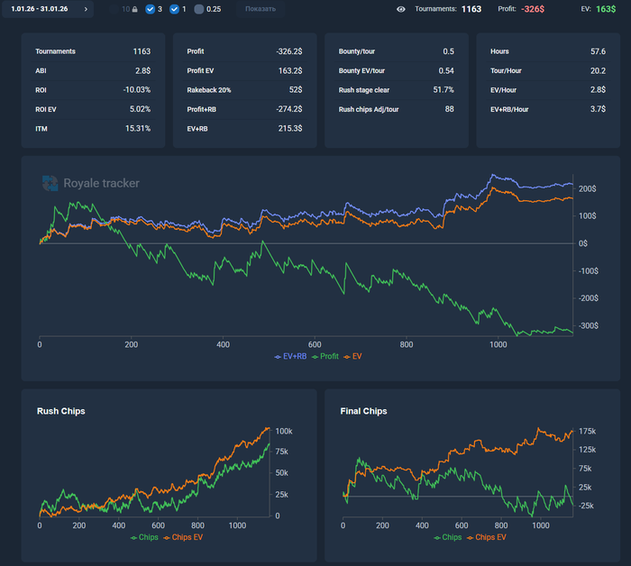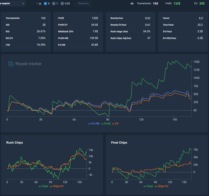 Вроде нормальное ев, попробую катать 9 столов и делать это реже, но концентированно, чтобы попадать в гонки.