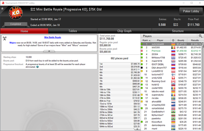 По поводу правила №8. Разумеется, я отыграю необходимую дистанцию, с отчётностью вот вопрос, скорее всего буду писать что-то о загрузке, мб продолжу марафон в духе: как бы он шёл до конца месяца. Марафон получился на удивление не лудоманским, только 1 турнир не входил в брм, я в нём выиграл >500. Пока банкролл не достигнет 10к - постараюсь вести отчётность как полагается, тем более осталось немного. Результаты дня: Сыграл 42 турнира с АБИ $11.44, в бай-инах вышло $480.6, призовыми получилось $6233,55. Профит дня составил $5752,95