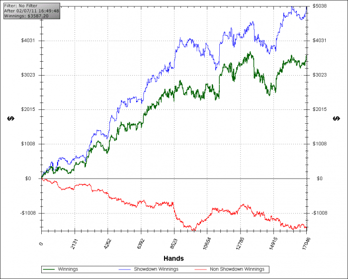 С обратной стороны такое тоже было. Он сделал колл 3-бета с JJ, и мы выставились на 9-хай флопе, у меня были А9.