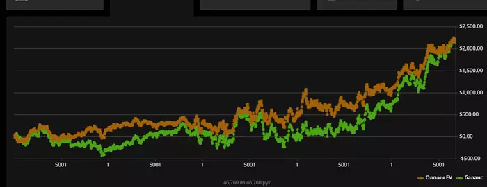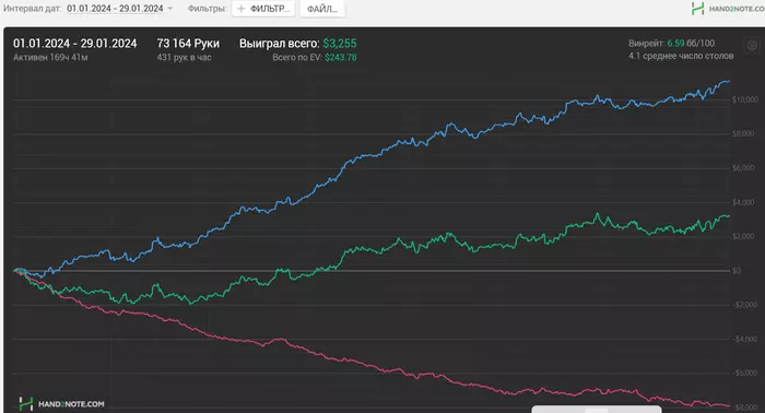 График не учитывает рейк, по кассе со всеми приколдесами вышло +100.