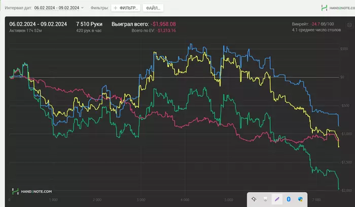 Оформил подписку на визард, в целом много времени проводил в игре, а если не в игре, то в визарде (кстати, большие вопросики есть по некоторым линиям и рейнджам), было прям ПОЛНОЕ погружение в покер, возможно даже чересчур полное, потому что 120к рук за месяц плюс ежедневная работа над игрой это достаточно дохуя. Но мне в целом крайне нравится, перестал любить спать, потому что, когда спишь ты нихуя не делаешь, подрываюсь без будильника в 6-7 утра и сажусь за столы под кофеек - охуенно, лучшая работа в мире. Сейчас на три денька скатаюсь в Омск почилить, затем опять вернусь откатывать хорошие дистанции.