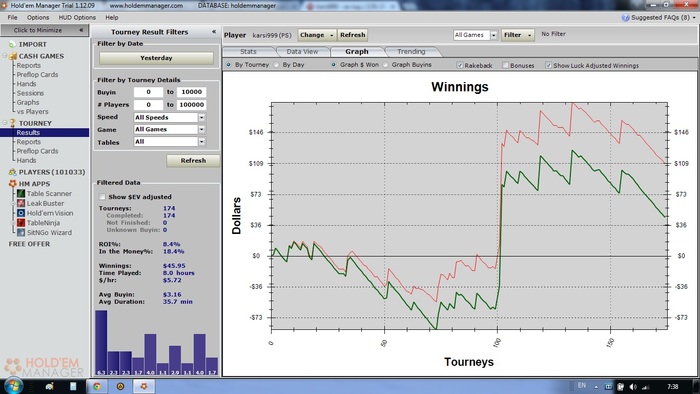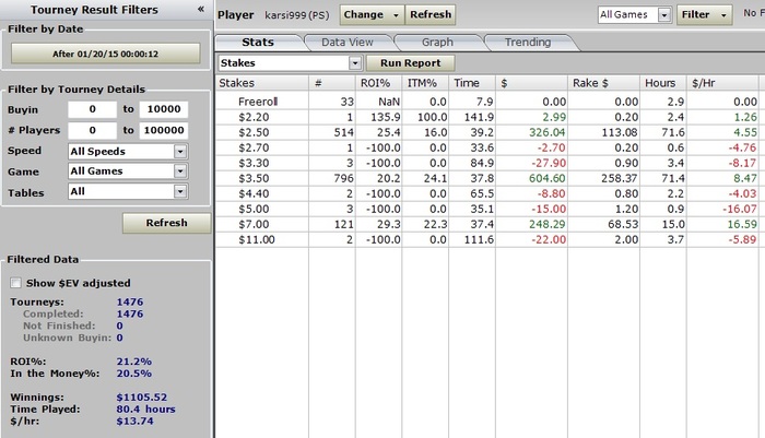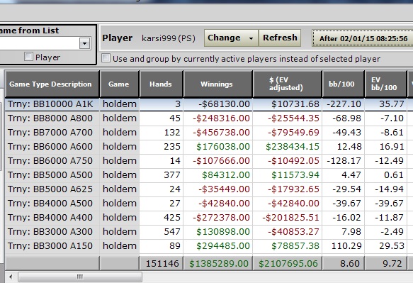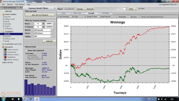 Вот объясните мне как можно играть в минус при ЕВ 8,5бб и реале 8бб? На самом деле я проиграл на 1000$ больше так как в декабре играл по бэкингу. Короче пока живем не сладко...