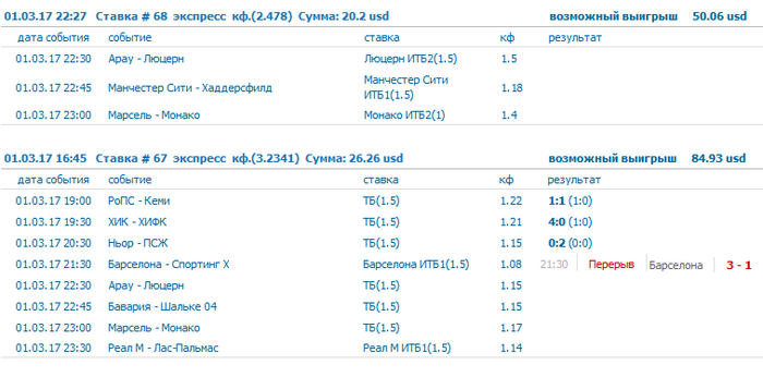 Невасёк @ 1.3.2017 Занимайте, ставьте вместе со мной и проигрывайте.