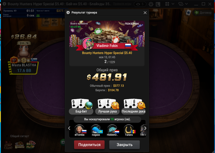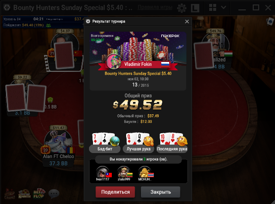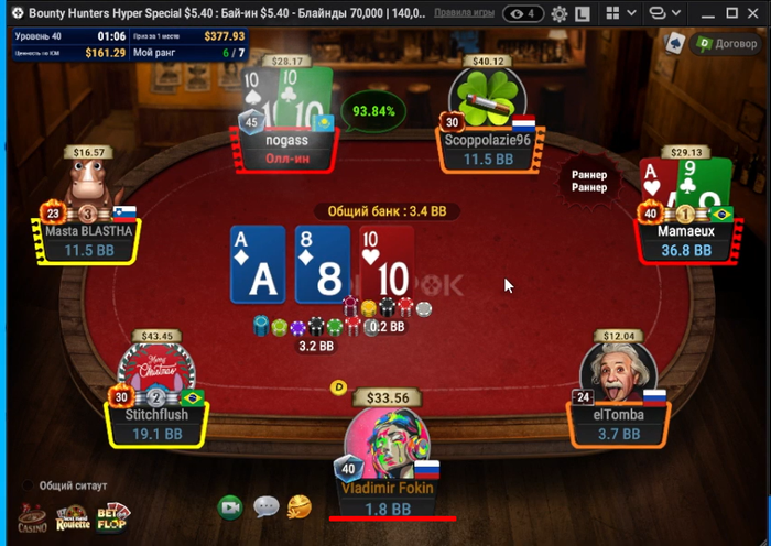 Комфортный стек после топ 100, приятный лайн-ап оппы выкидывают на блефы, рег из штанов выпрыгивает и переблефовывае в 3/3 спотов в меня, с велью получаю экстра-велью от оппов