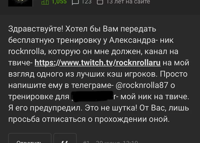 Котэ, а вдруг это Рокнролла тебе и написал про тренировку?