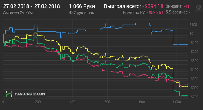 Лентяйный месяц, Новый год, Рождество и 4 дня рождения близких людей, итого минус 7 дней катки. Зато о работе над игрой не забывал, ковырялся в софте, купил Крев и в додачу получил ГТО+ солвер, стало интересней заниматься стратегией. С февраля планирую плотно катать, заниматся, нужно решить пару проблем со здоровьем и пойти наконец в зал. Читаю развивающие книги, хочу зарядится энергией, мотивацией чтоб не топтатся на месте. На ПС сыграл всего 4к раздач в этом месяце, пока назад не тянет) В этом месяце впервые на нл100 сыграл раздач больше чем на нл50
