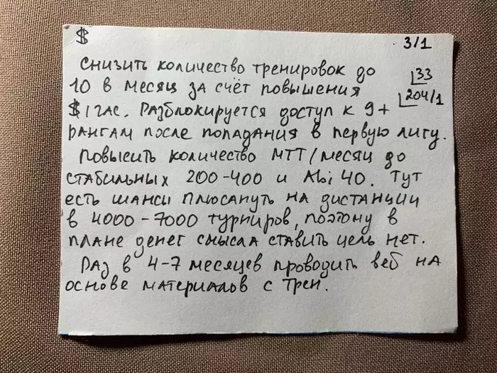 4. Когда конечная цель в 100 раздач будет выполнена, отобрать лучшие 30 из них и издать печатной книгой под названием "MTT покер в 2023 году"