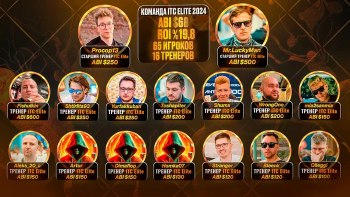 ✔️ Все тренеры ITC Elite — игроки с ABI $100+ при среднем ABI команды $68