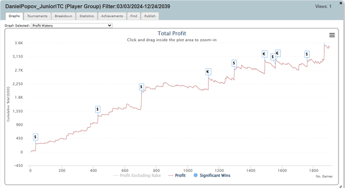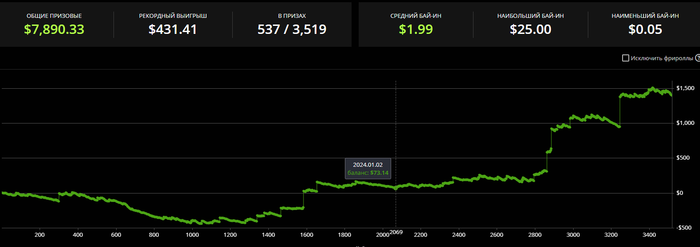 Я играю утро-день, поэтому у меня не было как затяжных даунстриков, так и пятизнаков. Для меня яркий момент — это 0 месяцев в минус в 2024 году. Все отыграл в плюс, ещё и с шикарным РОИ.