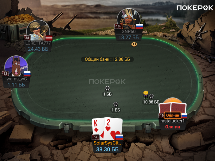 Мы чипаки в 5-максе. Есть супер-коротыш и просто коротыш. Мы в 2.5 раза больше по стеку, чем второй после нас в раздаче.