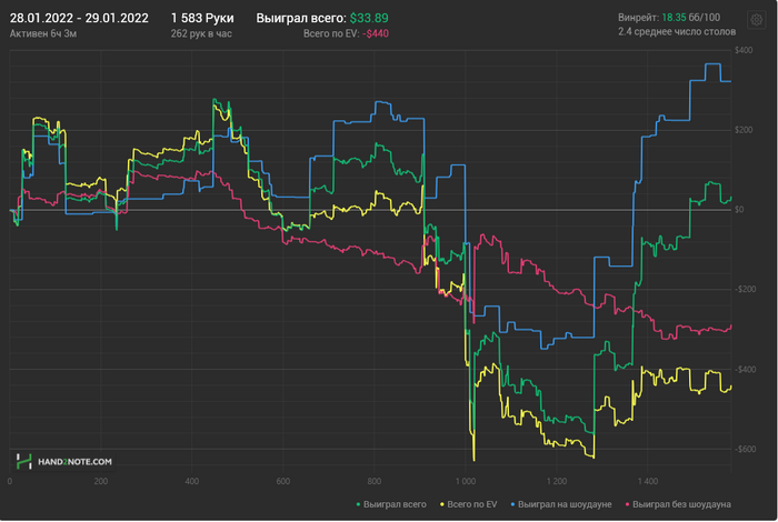 От недобора у меня такого не бывает, это же дисперсия, она не зависит от меня. Больше желание катать отбивают собственные грубые ошибки, постоянная неуверенность в игре, которая после них только увеличивается. Ну и когда долго проигрываю по ЕВ тоже всегда ломается игра и пропадает желание играть (его и так нет лол)