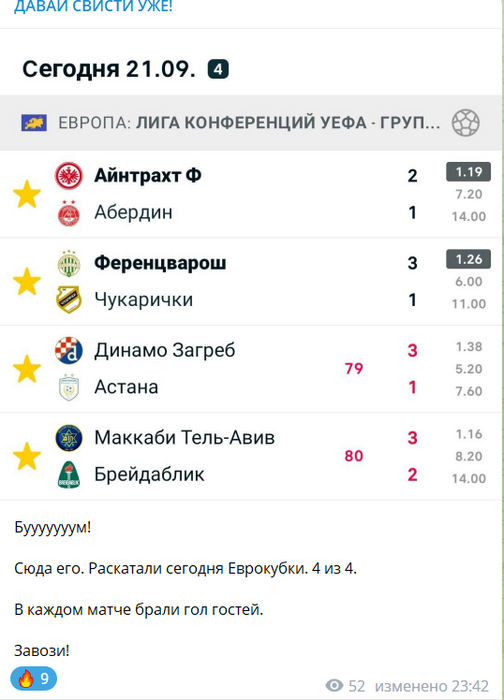 Сегодня удачно в Лиге Европы выступили. Брали гол андердога в каждом из матчей