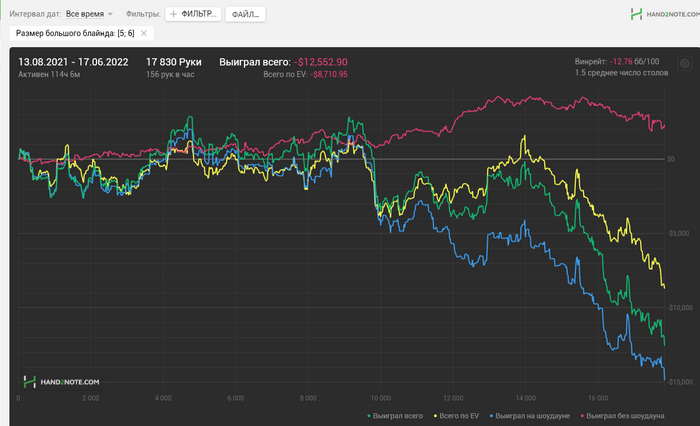 Вот Леха Заворотни, у которого сейчас хуевый ран выпал и август -17к получился, хотите, верьте, хотите нет, на самом деле тут не только в дисперсии дело. Я когда смотрю его стримы, удивляюсь, он отвечает почти на 100% вопросов, я к слову, отвечал процентов на 60-70, 30% пропускал, и то пиздец как не успевал следить за игрой вследствие чего насасывал. Я практически уверен, что ему можно было избежать до 50% потерь при хуевом ране, если бы не стримы. Но видимо у Лехи основной акцент сделан на развитие своего проекта POKERIQ и в этом плане стримы ему помогают. Тут главное как-то посчитать окупается ли этот момент или нет, остальное дело техники.