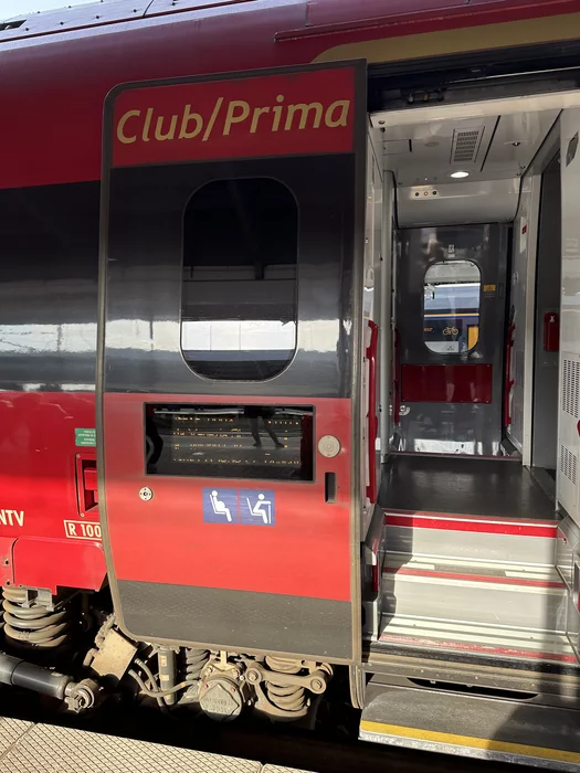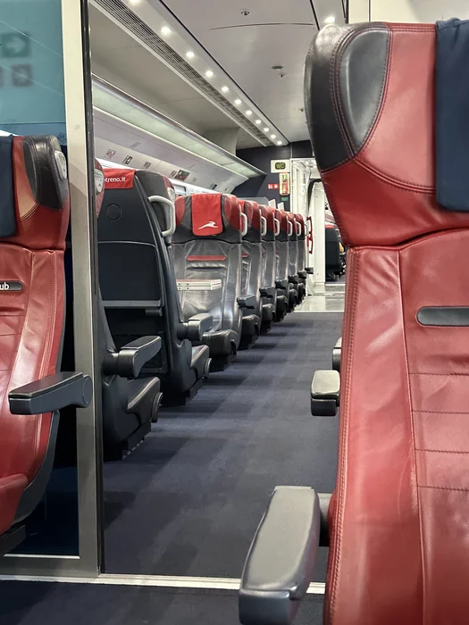 Вагон бизнеса почти полностью пустой. Сбоку один иностранец сидит и все. Видимо итальянцы не ездят за такие большие деньги)