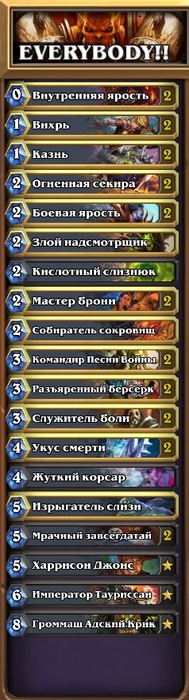 Еще занес чемп по хартстоуну у себя в городе 24 человека вроде было, играли на вылет бест оф 5 (до 3 побед каждым классом). Первый тур я прошел фрислотом, потом сыграл 4 игры, 3-1, 3-0, 3-1 и упорный финал 3-2. На ютубе даже выложили видео финала, кому интересно можно найти через поиск "hearthstone cafe в Тамбове" все 5 игр финала есть.