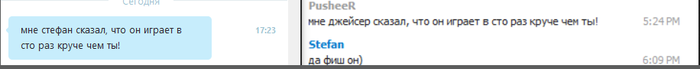 Я не очень, хотел с тобой играть, потому что трезво оценивая свои шансы..ну короче их маловато, и можешь не писать тут что ты не уверен что в ХА сильнее или не сильнее меня, я знаю что ты оверскромный парень.