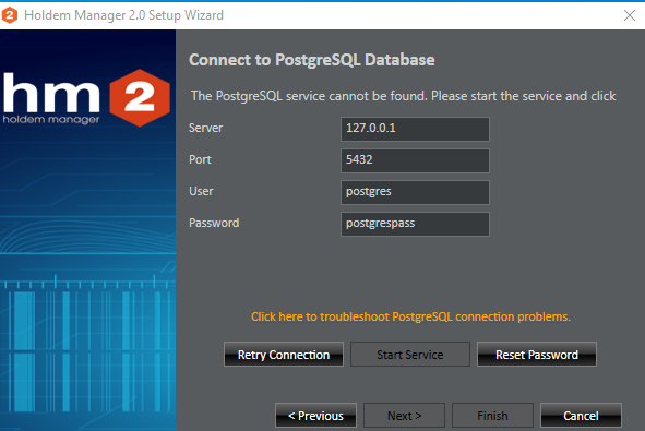 проверь для начала, запущен ли Postgre. В диспетчере должно быть так