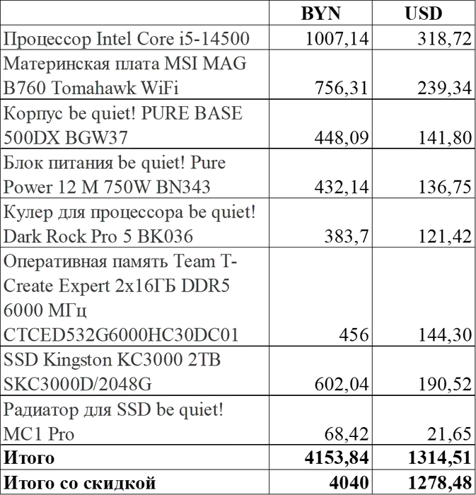 CarbonBasedLF @ 02.06.24Здравствуйте. Решил собрать новый ПК на замену старому.