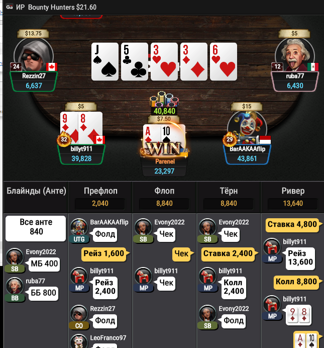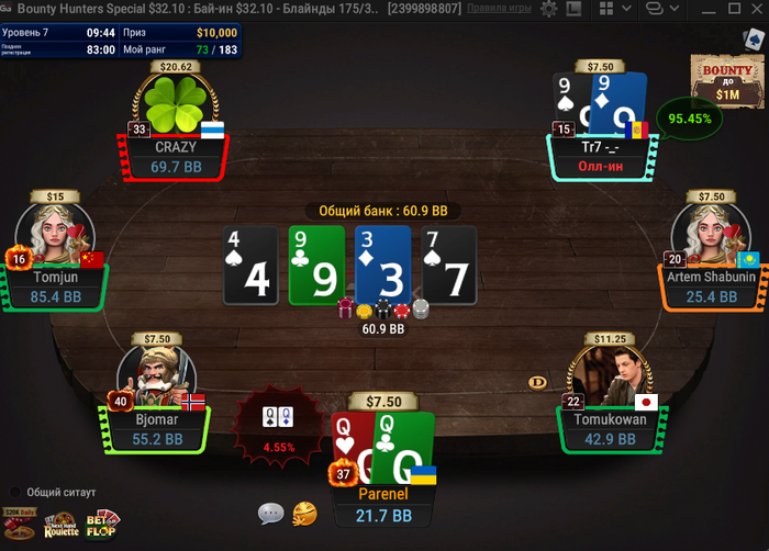 в 1 турнире только сделал ерунду не увидев кол 3бета в холодную и уже замазался своим 4-бет блефом