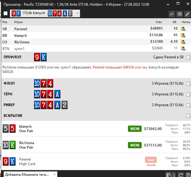 Все. Написал короткую шпаргалку в блокноте за сегодня в моменте игры, меняю игру чисто по тому как чувствую игру, а не по тому что там когда-то тренер мне сказал нужно ставить тут и не ставить тут, и тут опы так не блефуют. Блефуют, и ставить не нужно