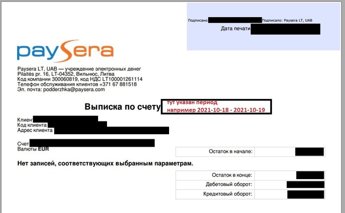 Кто-нибудь знает, есть ли в paysera выписка, чтобы на ней был номер карты и адрес?