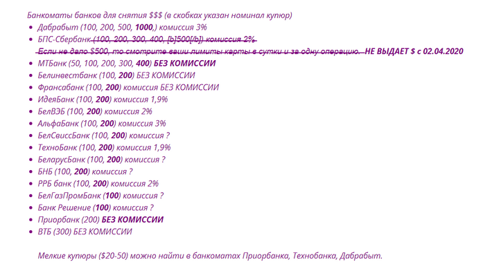 По снятию: зачем некоторые ищут банкоматы, заряженные евро? Я про РБ. Долларами выдает по отличному курсу. Белками иногда пересчитываю, да, если снять и покупать валюту - то не очень, но всегда дает по лучшему курсу покупки банками, в моем городе это приор. Иногда даже чуть лучше( совсем чуть) выходит снимать в белках