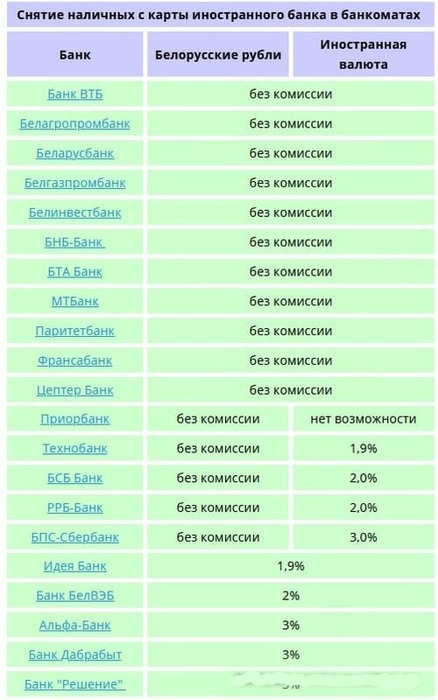 Senseless708, Перед тем как завести себе счет и карту я позвонил в несколько банков в РБ и спросил про комиссии на снятия в их банкоматах картой иностранного банка - везде сказали 3%, а по факту этих комиссий не было.