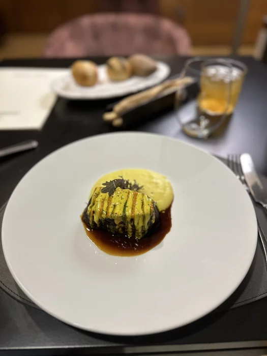 На основное взял ростбиф с тремя пьемонтскими соусами - перец, петрушка и что-то еще было. Тоже достойно, соус достаточно тонкий и приятный.