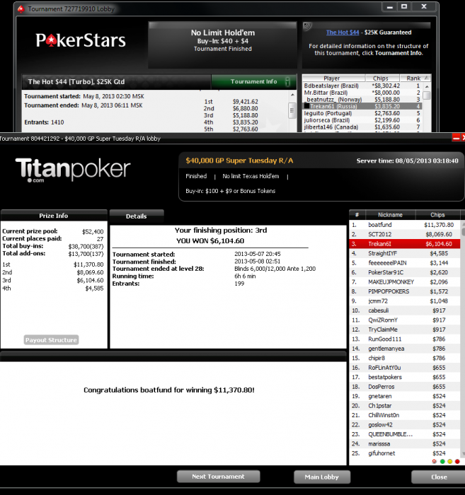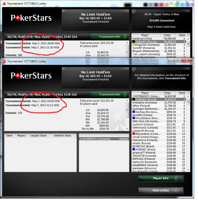 ТС, ты с начала года, те за неполные 5 месяцев, откатал уже 8700 мтт только на старзах. ОМГ получается по 1700 мтт в месяц, и это без учета других румов. Можешь сказать как получается столько турниров отыгрывать? Сколько столов играешь одновременно, сколько у тебя открыто столов, когда есть 1 или несколько важных дипрана? Ну и конечно сколько в среднем в день часов играешь? Сорри, если этот вопрос уже задавали
