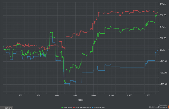 Ну и где отыгрываться? Где можно отыграться, когда на БР 75$??? Конечно же на нл10 ЗУУУУМ!!! 1000 рук и минус 25$ превратились в плюс 35$.
