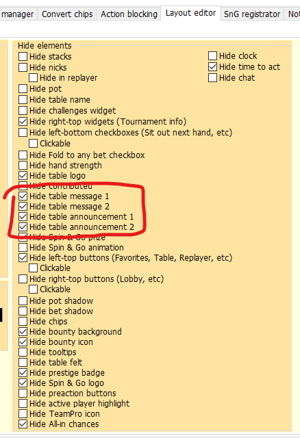 Привет LikeAA, при all-in в зуме использую HUD->Hide board if hero all-in на весь стол. Очень стрёмно долго смотреть аллин. Но если в новой раздаче у меня осталось 100бб то непонятно я проиграл или поделили банк. Приходиться каждый раз смотреть реплеер. Можно средствами Starscaption хоть каким нибудь способом вывести эту информацию на стол?