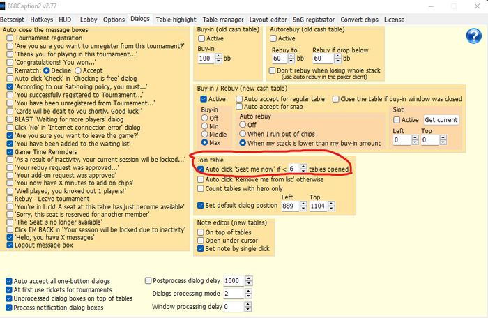 привет, у меня есть такая проблема, систематически выкидывает из PokerStars если я мануально сажусь через открытый стол на совбодное место.