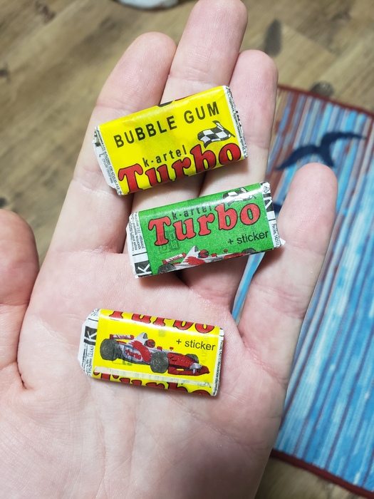 В мою глухомань прям сами жвачки целиковые попадали крайне редко, в магазинах их не было. Но вкладышей было достаточно, даже прям с однозначными номерами