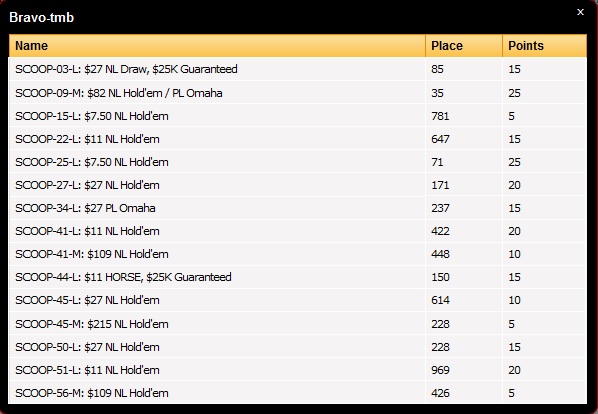 Скуп прошел для меня неплохо, но в минус. Я отыграл почти все турниры в категории лоу и треть в категории мидл. Попал наверно рекордное для себя количество раз в итм. Был один раз 2 день в лоу, далекий проход в мидл, и еще в двух турнирах миддл выставлялся на пребабле за чиплидерский стек, но проигрывал. В целом сложись несколько аллинов в мою пользу и мог быть успех, а так по факту выступил неудачно в который раз.