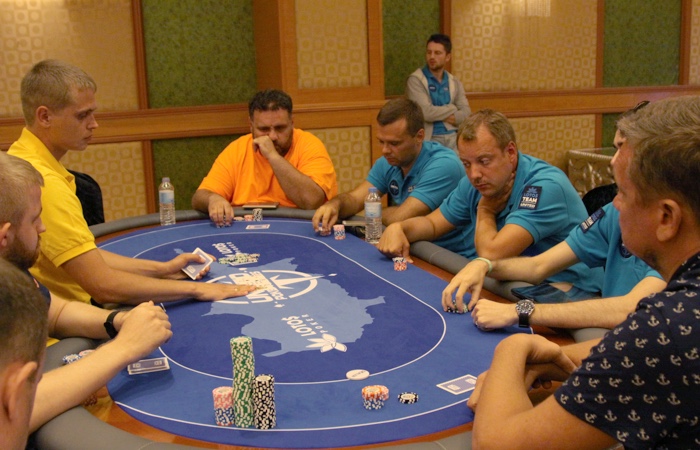 Подошел Дима Бодров и решил восстановить справедливость: "За нашим столом играет чиплидер, у него 95 тысяч!"