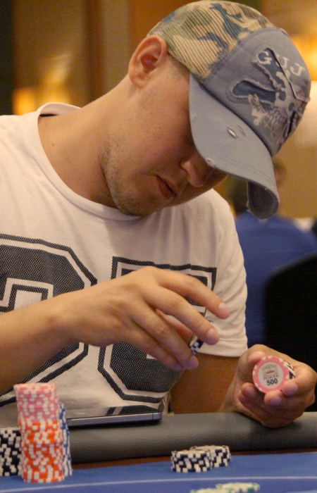 P.S. Пригарный завершил выступление. Зарейзил , получит 3-бет и зашел на флоп . Чек-колл ставки 7,500 и пуш на терне . Соперник - колл с . "Все дело в том, что играл не в своей шмотке, - резюмировал Саша. - Завтра зайду снова, но играть буду уже в своем!"