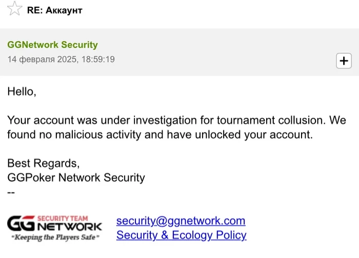 И еще сделаю группу с ТГ для пострадавших (скорее не из-за эмоций, а уже чисто исследовательский интерес😀, ведь интересно, - какие все таки реальные масштабы происходящего беспредела на GG? Ведь если Вася задолжал деньги Пете, в Арбитраже как правило людей ещё интересует вопрос: кому ещё он должен? А тут целый покер-рум, который уже не брезгует отнимать деньги даже у микролимитчиков. Настолько дела плохи?). И да, напишу в Комиссию, которая выдала лицензию (вряд ли это поможет, но тоже из принципа. Если бы такие действия были со стороны какого-то говгорума, мне бы даже было лень писать этот пост и вообще что-либо предпринимать, но как понимаю, речь идет о покерруме #1 в мире. Поэтому их действия по принципу гопника их подворотни в голове не укладываются). Призываю всех пострадавших предавать это дело огласке, чтобы был понятен масштаб происходящего. Написал пока в общих чертах. После переписки с GG, буду думать по поводу Арбитража и описания всех подробностей. Естественно, с моей стороны никаких нарушений не было, иначе этого поста тоже не было бы с моей стороны. Почитал на форуме про возможные причины заморозки. Да, я тоже входил с телефона, но пожалуйста, не пишите вот это, что «за это могут забанить», ибо это за гранью добра и зла. Делать приложение для телефона, чтобы использование этого приложения было поводом забанить?) И это правда покерный рум #1 в мире? Но пока это догадки, ибо саппорт GG в своем духе, пока молчит. Продолжение следует…