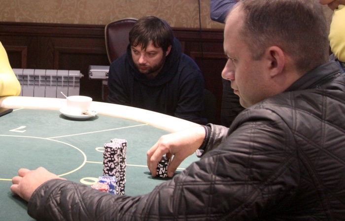 Евгений почти от безысходности поставил олл-ин на . Никита задумался на некоторе время, и со словами "конечно, колл" открыл .