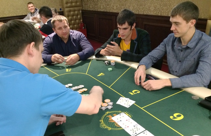 Вова поднялся, взглянул на свои карты, на соперника, улыбнулся - и объявил олл-ин. Ваня - мучительный пас. За ним - быстрый колл.