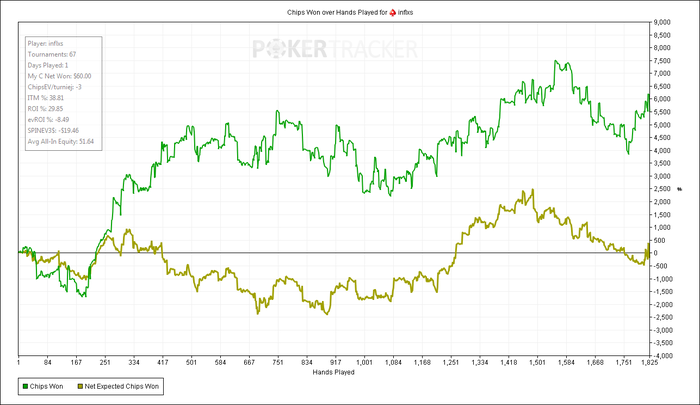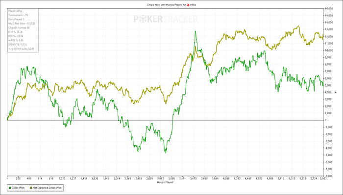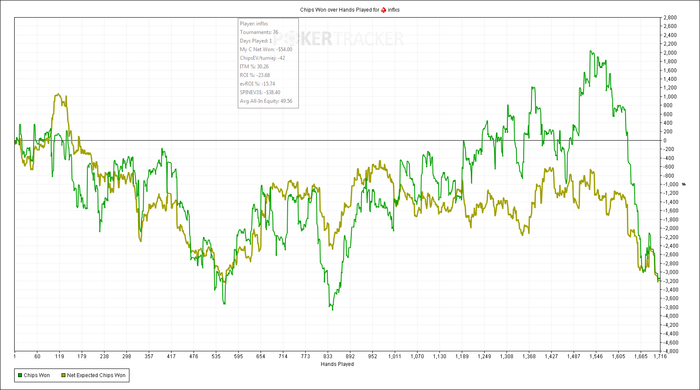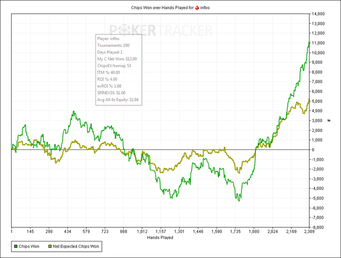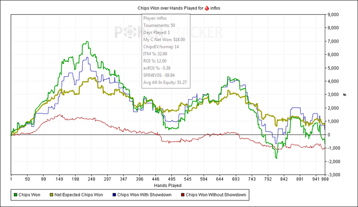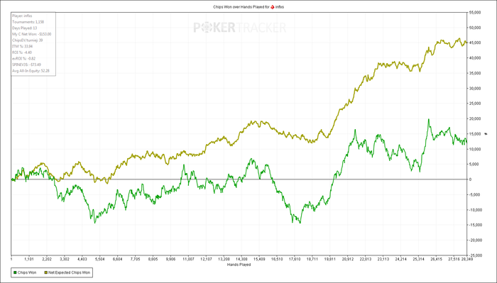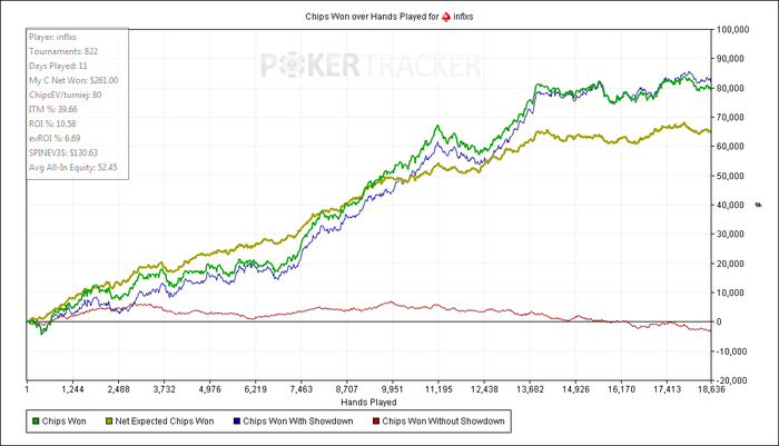 Красная линия перестала улетать в низ, и чипЕВ резко вырос на 30 шашек. Пока еще сэмплов малова-то, всего 822, но я думаю, что околореальное ожидание.