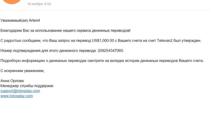 2) Я думаю что вы с легкостью можете проверить что я вообще со счета лотоса не осуществлял никаких переводов, только с 888 и то только тем людям которые покупали у меня доли в турниры, соответственно они до этого делали переводы мне. А так я делал только выводы на скрилл.
